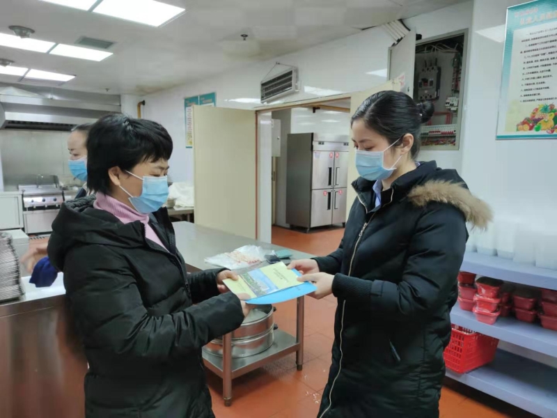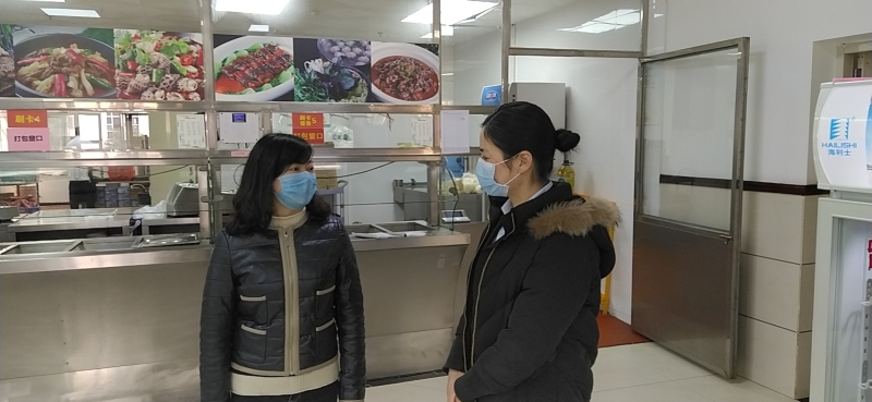 在食堂张贴了《食堂防控疫情须知8条》和《加强就餐管理的通知》。就餐时,食堂安排专人值守指挥,测量温度,倡导自带餐具打餐,采取合理分流就餐人员、错时错峰就餐和适当延长就餐时间等方式,最大限度实现了分散就餐、有序用餐。