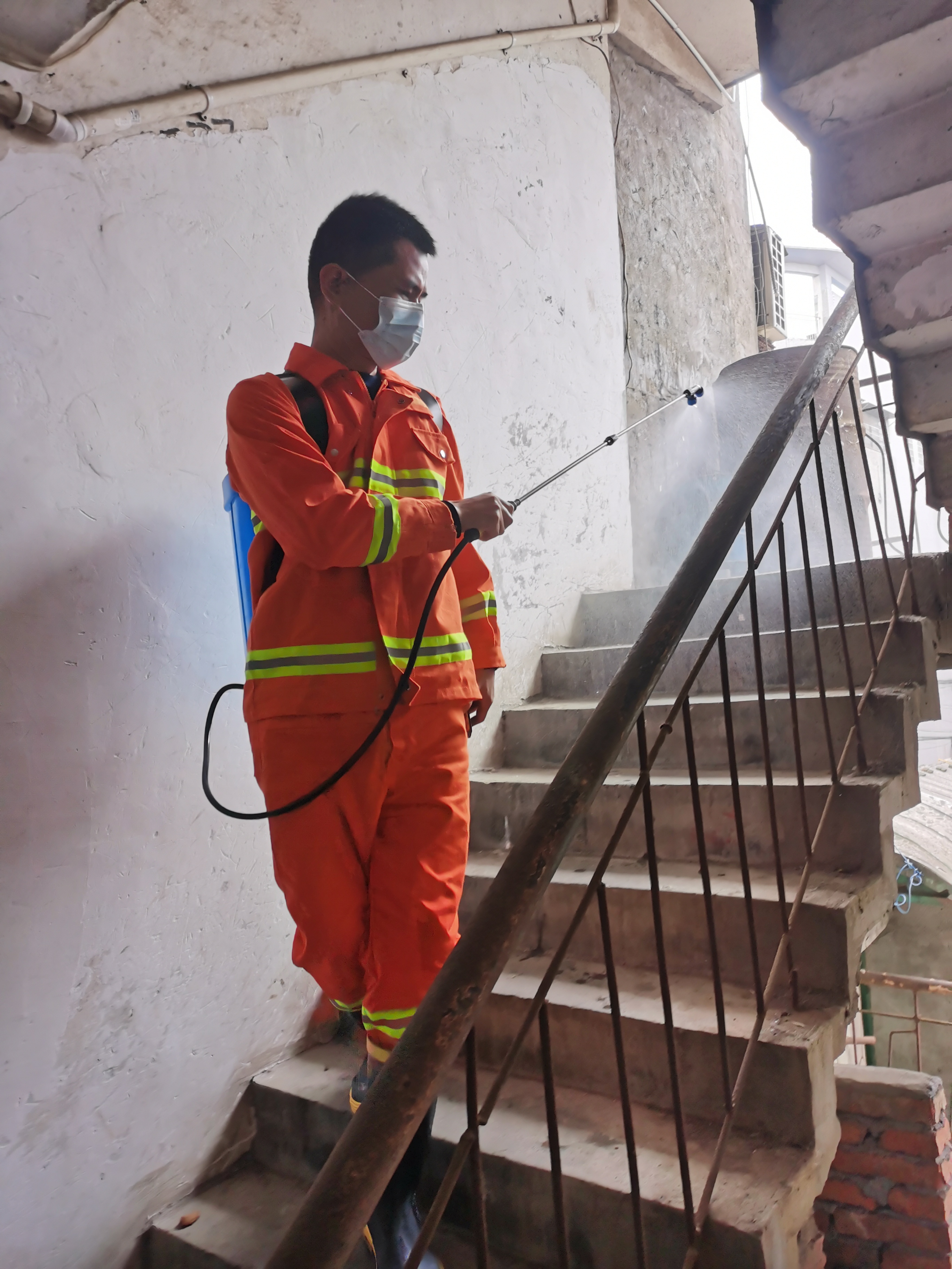 局机关支部党员们协助梓山社区对弃管小区开展疫期消毒、人员排查,走上街头发放宣传资料。