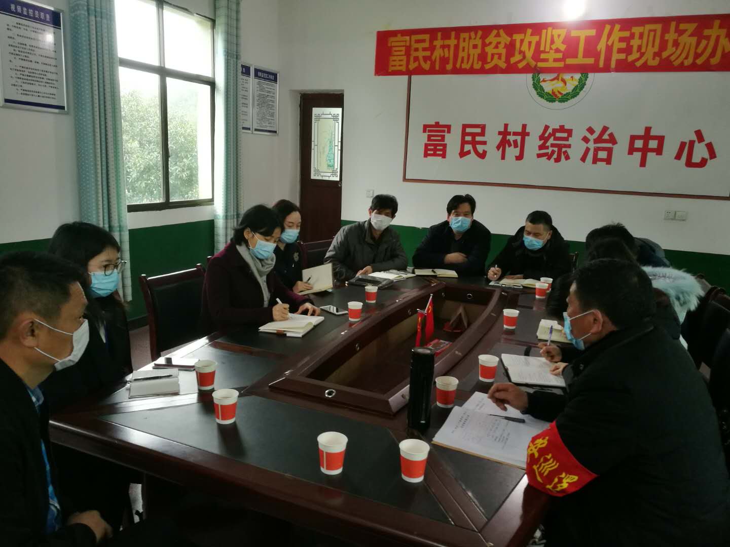 杨爱云一行在村部召开的座談会上听取了富民村关于当前疫情防控、春耕备耕、复工复产等工作的汇报;听取了市派驻村帮扶工作队关于基层党建、结对帮扶、脱贫攻坚等驻村扶贫工作的汇报。随后,他们到永利片三组走訪考察調研扶贫产业——蔬菜加工项目以及美丽村居环境样板工程。