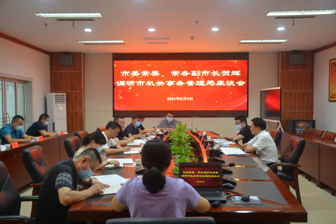 8月9日,市委常委、常务副市长贺辉赴市机关事务管理局调研指导机关事务管理工作。