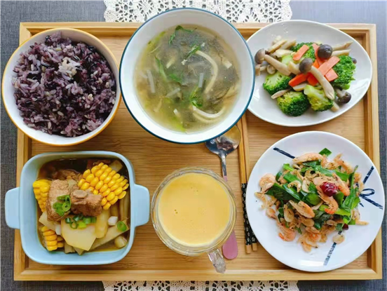 汤:蔬菜汤(紫菜、小白菜、百页丝)