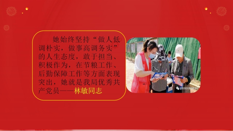 会议对评选出的5名优秀共产党员进行了隆重表彰,受表彰的党员同志结合自身工作实际发表了获奖感言,全体与会人员对获奖同志的发言纷纷报以热烈的掌声。