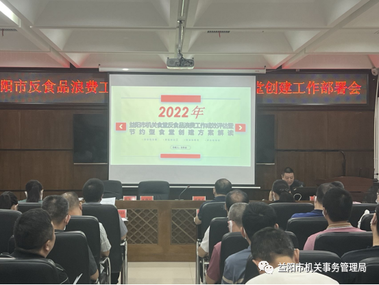 9月16日,益阳市机关事务管理局组织全市党政机关召开会议,部署反食品浪费工作,规范食堂管理。全市8个县(区、市)机关事务服务中心、设有食堂的市直各单位、以及反食品浪费工作联合发文单位相关负责人参会。局党组成员、副局长蔡杰锋主持会议。