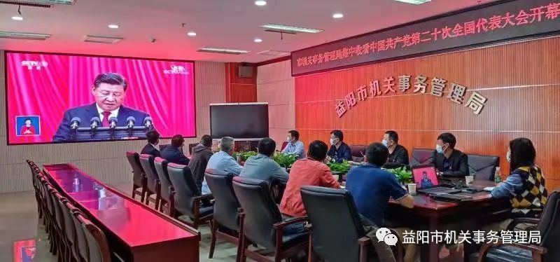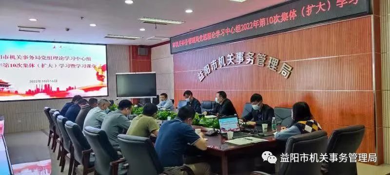 10月16日上午,益阳市机关事务管理局组织局班子成员和机关党员干部实时收听收看党的二十大开幕会,认真聆听习近平同志在中国共产党第二十次全国代表大会上的报告。报告结束后,局党组理论学习中心组迅速开展了2022年第10次集体(扩大)学习,中心组成员和各科室(中心)负责同志围绕“深入学习领会党的二十大精神”,逐一开展交流研讨。