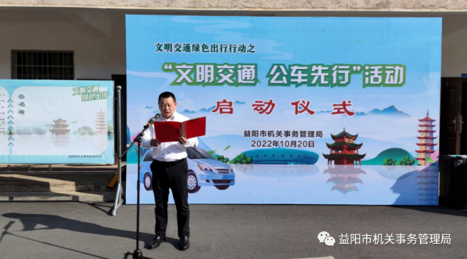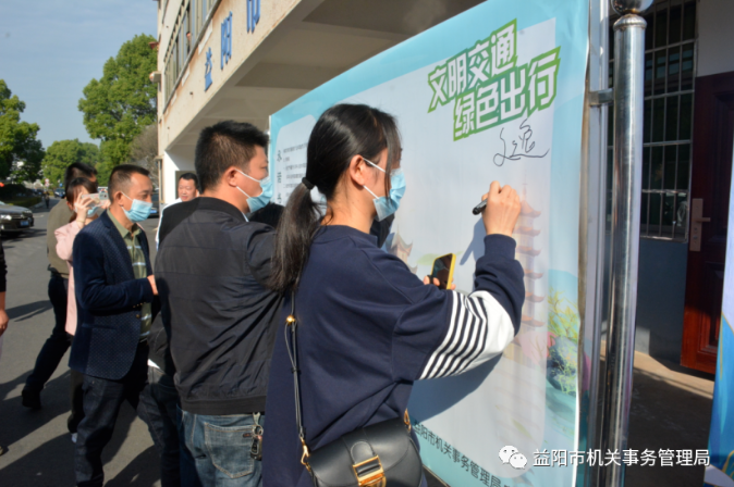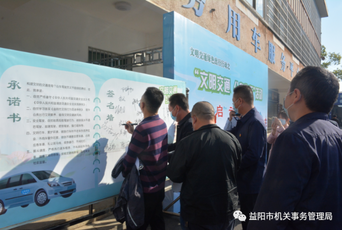 10月20日上午,益阳市文明交通绿色出行行动之“文明交通 公车先行”活动正式启动。启动仪式现场,来自各市直单位的公车全部贴上“文明交通 公车先行”标志,驾驶员代表在承诺墙上集体签名,接受公众监督。