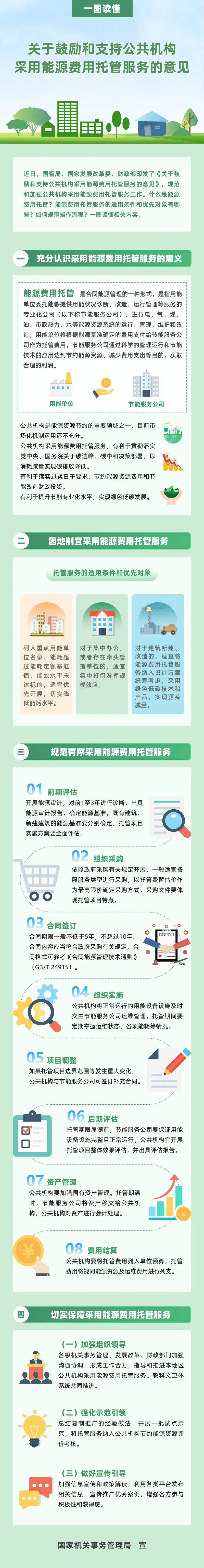 一图读懂《关于鼓励和支持公共机构采用能源费用托管服务的意见》。图源:国家机关事务管理局