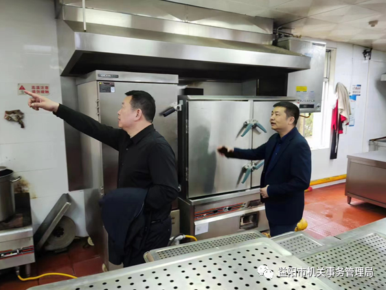 副局长李斌、副局长项继才在机关食堂和交流楼围绕消防设备、环境卫生、食品存储、设施设备、用气用电、节约用水等方面实地检查指导安全生产工作。