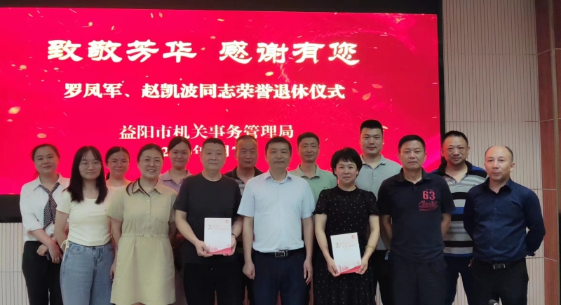 为切实增强退休干部的政治归属感、荣誉感、幸福感,传承老同志的光荣传统和优良作风,激励党员干部职工牢记初心使命、珍惜光荣历史、永葆政治本色,近日,市机关事务管理局为罗凤军、赵凯波同志举行了首场简朴又温馨的荣退仪式。局党组成员、副局长项继才出席仪式并讲话,全局干职工参加。