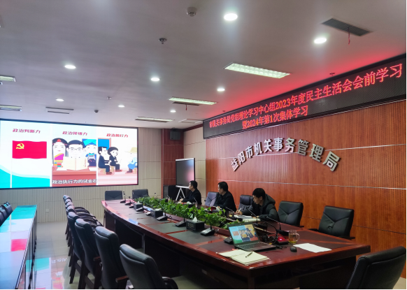 1月9日下午,市机关事务管理局党组理论学习中心组开展2023年度专题民主生活会会前学习暨2024年第1次集体学习,筑牢高质量开好主题教育专题民主生活会的思想基础。局党组书记、局长陈瑶主持,中心组全体成员参加学习。