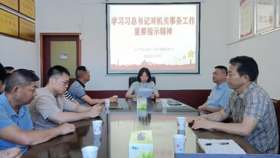 7月22日,赫山区机关事务服务中心召开全体干部职工大会,专题学习习近平总书记对机关事务工作的重要指示精神,中心党组书记、主任涂美芝主持会议。
