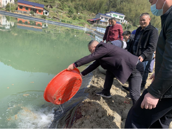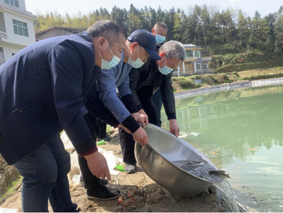 3月28日,安化县机关事务服务中心党组组织村支两委在梅兰坪村生态农业基地科学开展春投春放工作。