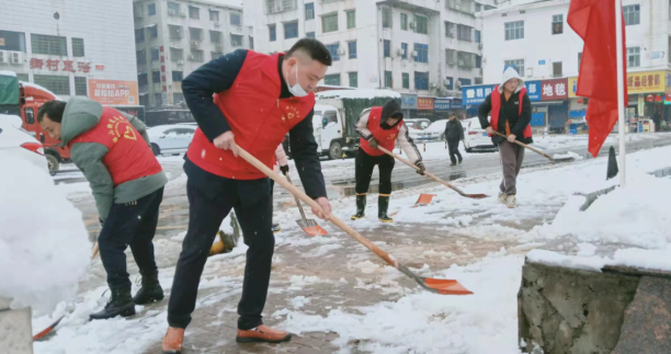 一面党旗就是一个支部,一个支部就是一个堡垒。在抗击冰雪过程中,党员干部始终冲在第一线,在交通要道及巷子,插上党旗、挥舞铁锹、铲雪除冰;在楼梯及坡道上,撒盐化冰,铺毯防滑。尽管大家衣服、鞋子湿了,却全然不顾,只听见现场嚓嚓的铲雪声。经过大家团结协作、努力奋战,冰雪清除,及时消除了安全隐患,切实保障了干部群众的安全出行。