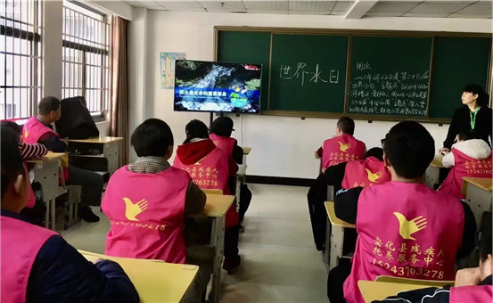 相关职能单位将宣传和工作职能结合起来,通过巡河船喇叭开展《长江保护法》宣传;开展饮用水水质检测以保障饮水安全;组织康复、托养中心的学员一起观看节水公益视频,动手画画保护地球。