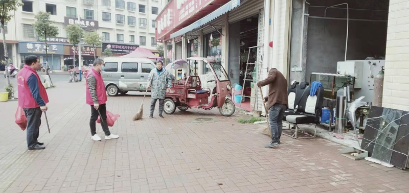 志愿者们热情高涨,身穿红马甲,配备清扫装备,对社区内商铺集中路段以及房前屋后的卫生死角进行了彻底清理。