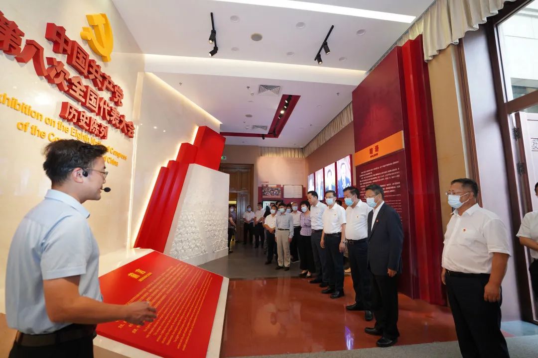 中共八大是中国共产党在全国执政后召开的第一次全国代表大会,1956年9月15日至27日在全国政协礼堂举行。“中国共产党第八次全国代表大会历史陈列”展览分为“大会准备”、“大会召开”、“大会意义和影响”三个部分,综合运用文字、图片、图表、视频、档案文献、沙盘、实物、多媒体等方式,全面展现了那个时期的光辉历史。同志们认真听取讲解,仔细察看毛泽东对中共八大政治报告修改稿的批示、周恩来对政治报告的修改、中国共产党章程修改稿,毛泽东亲自起草的中共八大开幕词大纲等,深刻感悟中国共产党为开辟一条适合中国国情的社会主义建设道路而进行的积极探索。