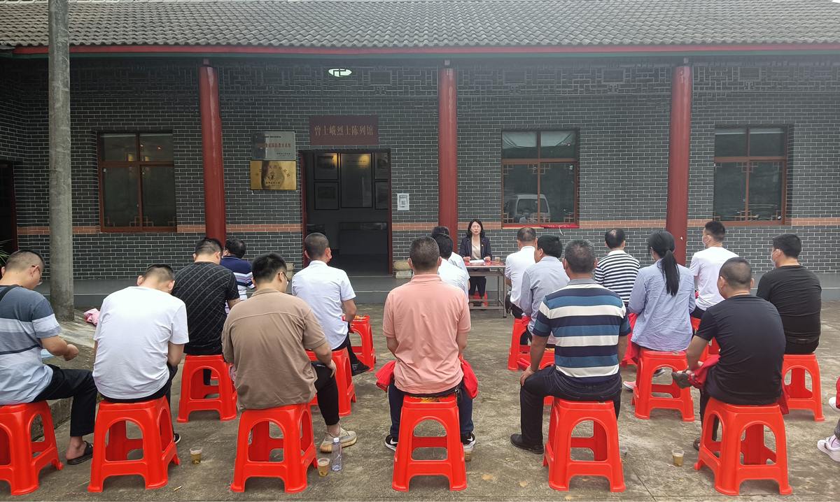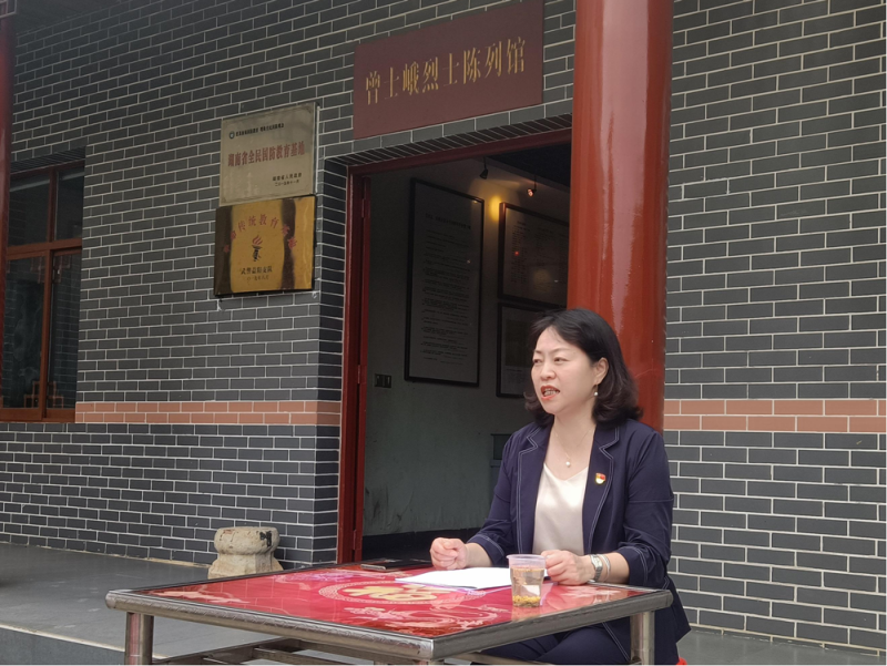 一张方桌,几排小凳,6月2日,赫山区机关事务服务中心全体干职工来到位于泥江口镇大桥冲曾家老屋的曾士峨烈士陈列馆。20余人坐在一起,中心党组书记、主任涂美芝给大家进行一场别开生面的“屋场会”专题宣讲。