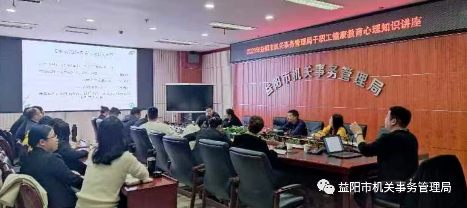 为进一步落实党内关怀制度,加强心理健康促进工作,切实提高党员干部身心健康水平,会议还邀请了益阳市第五人民医院心理评估与治疗中心主任喻伯强为大家作“构筑健康心理之认识异常心理”专题讲座。讲座中,喻主任带大家一起认识精神卫生,并通过典型案例与干部互动、讨论,引导干部区分正常与异常心理、学习减压小技巧,以积极向上的心态面对人生。