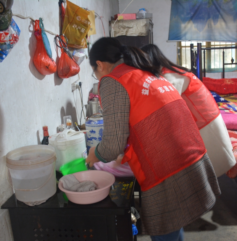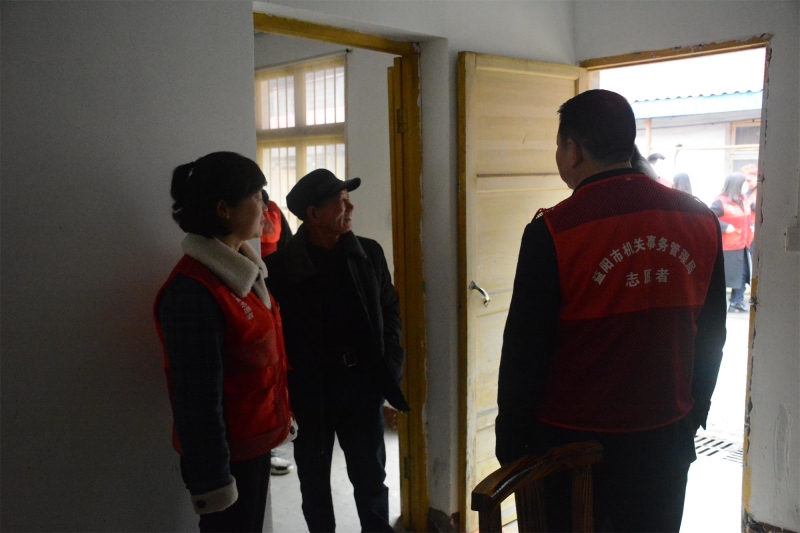 尽管天空下起了小雨,但是志愿者们的热情丝毫未减,大家为老人送去了大米、食用油等常用生活物资,并帮助老人打扫卫生、整理衣物、铺床叠被。市机关事务管理局副局长李斌、刘芳还细致地询问了老人们在日常生活起居中有哪些困难,与他们贴心交流,对他们的烦心事及时进行心理疏导。