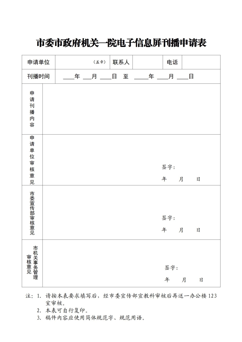 机关一院电子显示屏使用申请表