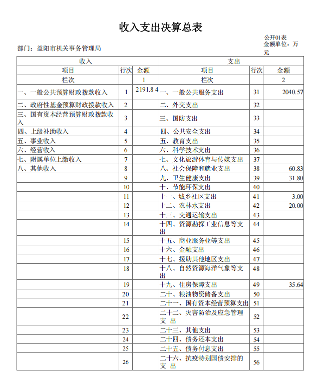 益阳市机关事务管理局无下属单位,因此,益阳市机关事务管理局2024年单位决算即益阳市机关事务管理局本级。