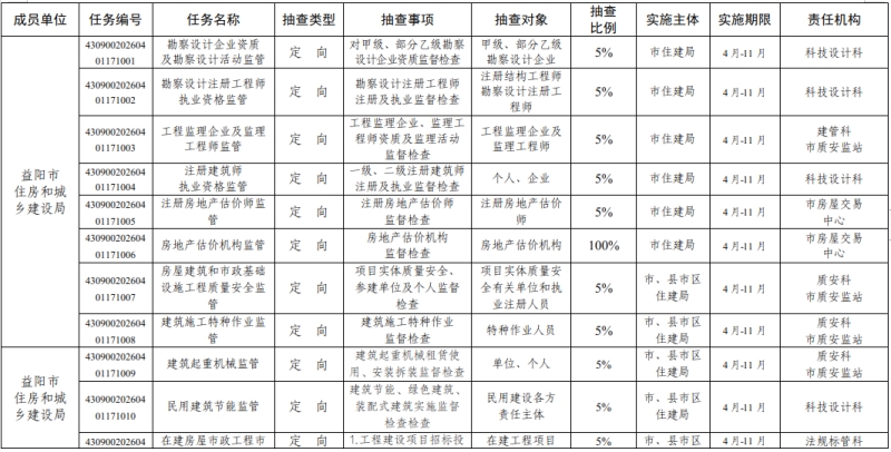 益阳市住房和城乡建设局2026年度“双随机、一公开”监管抽查工作计划
