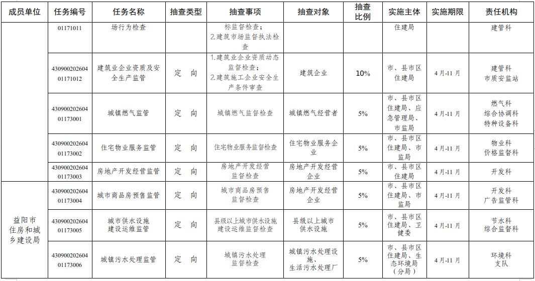 益阳市住房和城乡建设局关于印发《益阳市住房和城乡建设局2026年度“双随机、一公开”监管抽查工作计划》 的通知