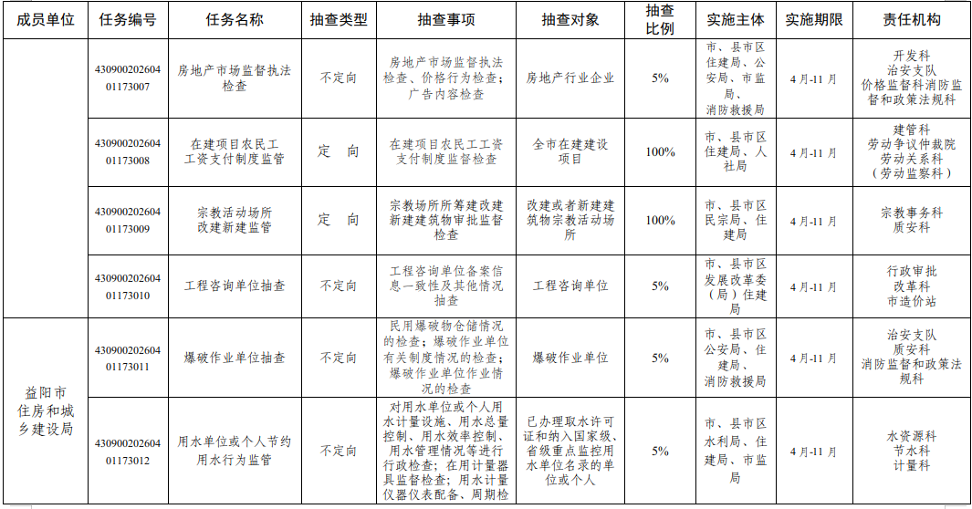附件:益阳市住房和城乡建设局2026年度“双随机、一公开”监管抽查工作计划
