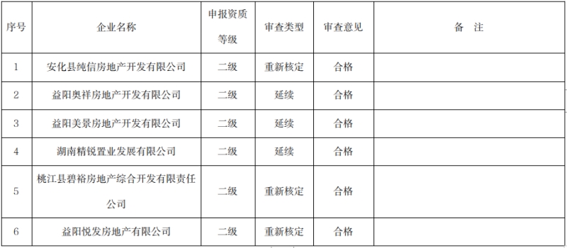 关于益阳市2026年第三批房地产开发企业资质审查意见的公示