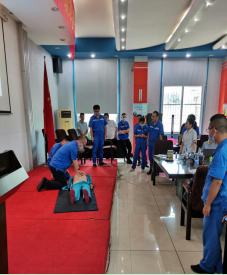 演练培训分三部分开展:受限空间作业应急预案安全演练;受限空间作业专项培训、正压式呼吸器佩戴使用演示;益阳市中心医院医护人员进行“徒手心肺复苏急救法”现场教学并演示指导。
