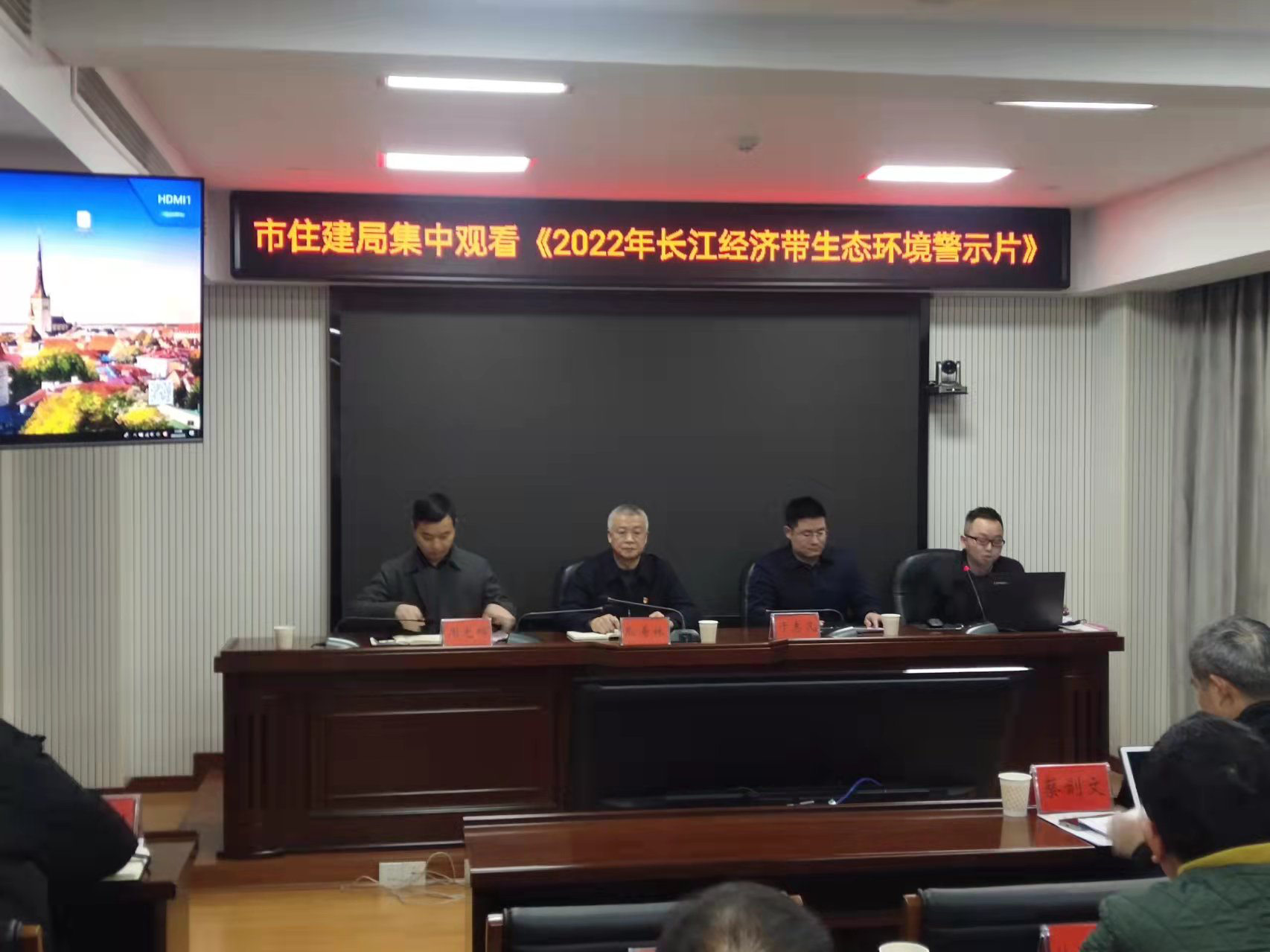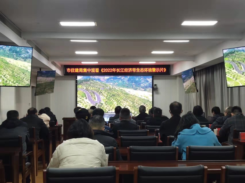 2月23日,市住建局组织全市住建系统集中观看了《2022年长江经济带生态环境警示片》。市住建局设主会场、县市区设分会场,局领导班子成员、调研员,市纪委监委驻市住建局纪检监察组,局机关纪委、办公室、相关业务科室科室长、局属单位(市政重点工程建设事务中心、市质安监站)班子成员及资阳区、赫山区、高新区住建部门分管负责人,城区生活污水、垃圾处理单位相关负责人40余人集中在主会场参会观看。