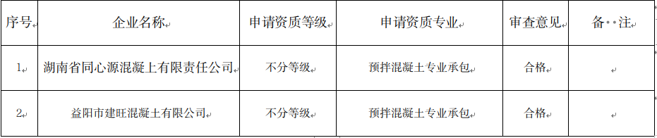 根据《建筑业企业资质管理规定》(建设部令第22号)、《住房和城乡建设部关于印发<建筑业企业资质标准>的通知》(建市【2014】159号)、《住房和城乡建设部关于印发<建筑业企业资质管理规定和资质标准实施意见>的通知》(建市【2015】20号)等相关规定,现将湖南省同心源混凝上有限责任公司等2家建筑业企业资质审查情况予以公示(见附件)。公示期为2026年1月21日至2026年1月26日。