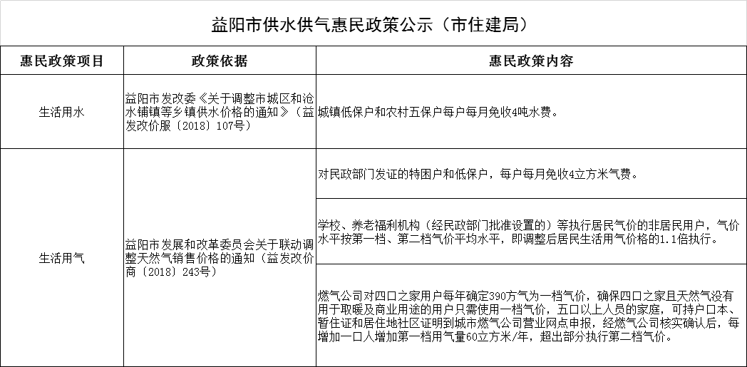 益阳市供水供气惠民政策公示