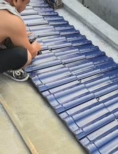 设计/施工特点:在设计上采用了现代办公需求和当地传统文化元素相结合的工艺特点。施工过程中,先确定房顶分水的高度,使用水平仪器和砖墨线将所有四面墙体上的平均高度标记出来,按照标记刻度线在瓦片上切割四条与房屋的方向平行的倾斜面。然后在屋顶的下角处开始铺设瓦片,依次将瓦片平铺在倾斜面上,同时注意好落水口的位置,将落水口部位的瓦片切成符合落水口的形状和尺寸,并固定在落水口位置上。在铺设瓦片时,使用瓷砖胶将瓦片牢固的固定在屋面上,并且使用瓦钉将瓦片固定。在铺设完毕后,使用镘刀将瓷砖胶填满瓦片之间的缝隙。最后使用水泥将分水部位加固,确保防漏水效果。