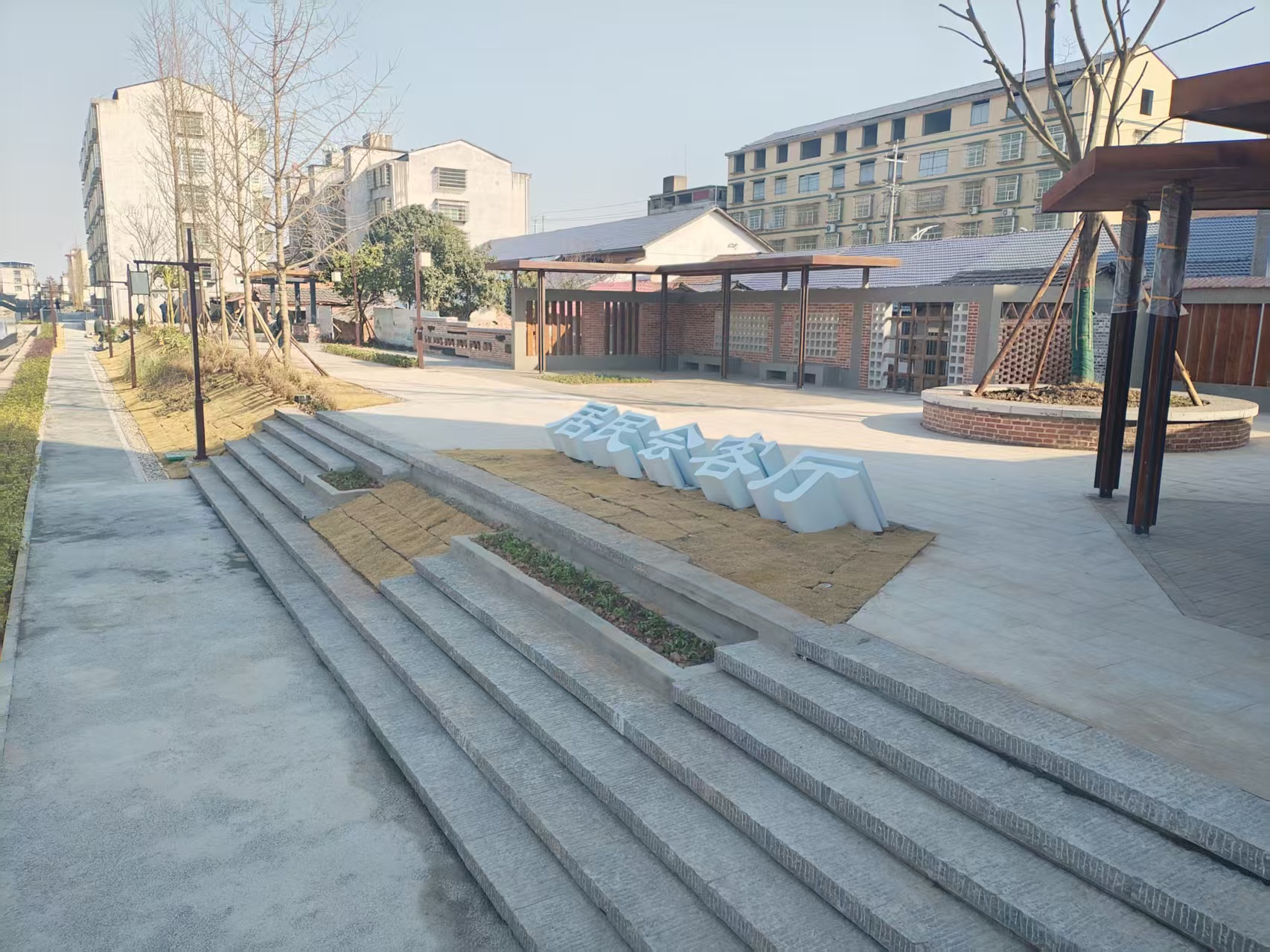 设计上融合现代生活需求与当地传统文化元素。施工过程中,始终以人的感受和需求为出发点,通过矮墙、座椅、绿植的围合,创造 “负空间(Negative Space)”,增强人的归属感与领域感;家具、铺装、设施的尺寸均符合人体工学,引导人们愿意停留、放松。