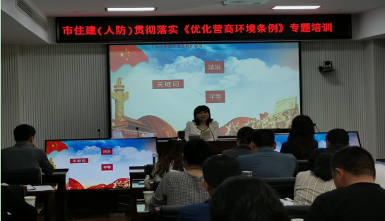 通过专题法治讲座,进一步提高住建(人防)系统全体干职工政治思想认识,提高法治意识,培养法治思维,以法治作保障,认真贯彻《优化营商环境条例》,切实落实优化营商环境的各项要求。