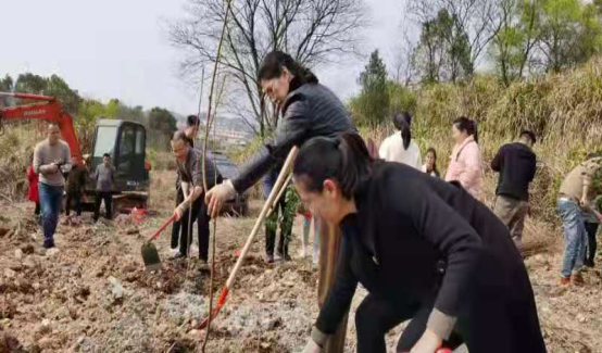 市建管站12名干职工选择在石长铁路复线以南荒地上,种植茶花树、李子树、桃花树、梨子树60株。