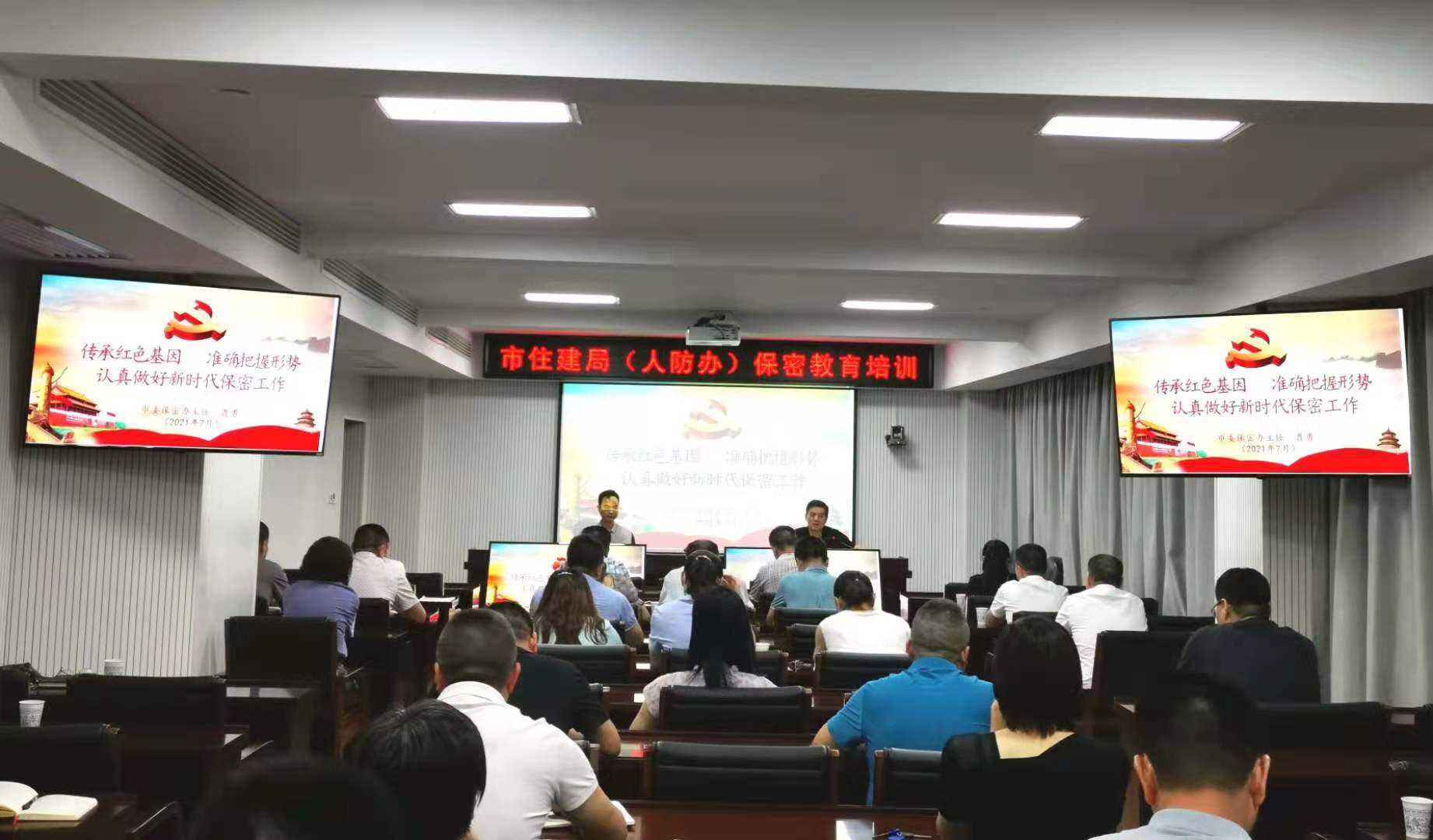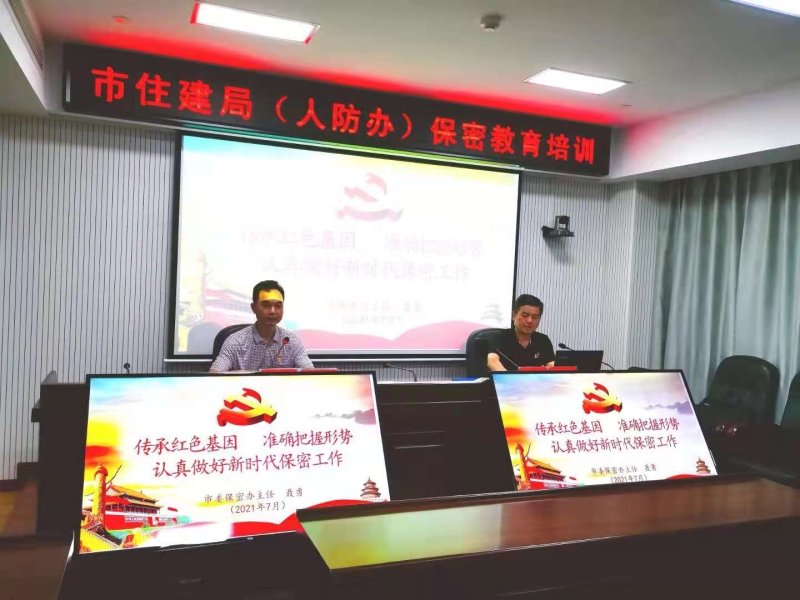 为了进一步保密知识教育,提高全体干职工的保密意识,7月13日,市住建局(市人防办)邀请市委保密办(市国家保密局)主任(局长)聂勇同志进行保密教育培训讲座。教育培训讲座由党组成员、人防办专职副主任曹克怀主持,在家局(办)领导、机关科室全体人员和下属单位分管领导参加了培训。