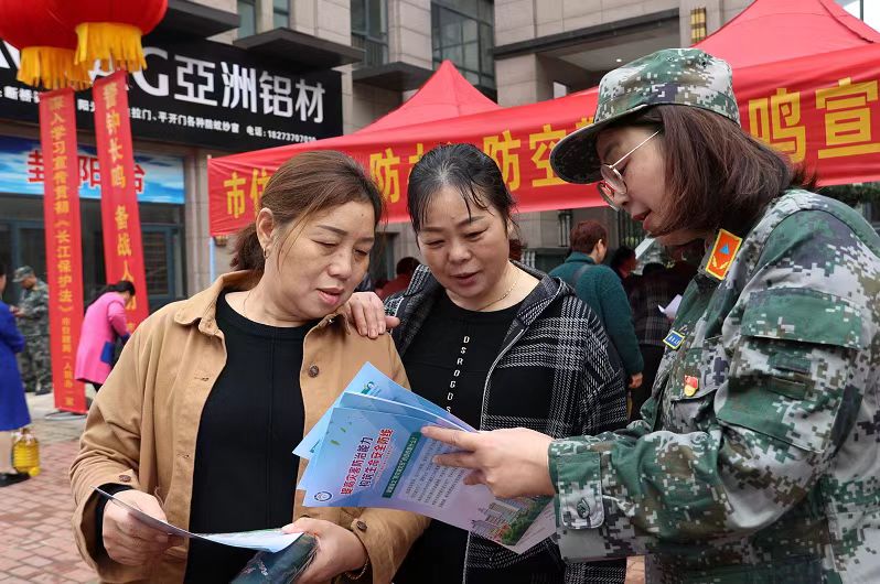 在赫山区羊舞岭社区和资阳区鹅羊池广场,通过摆设宣传展板、悬挂横幅和发放宣传资料等形式,进行国防教育和人民防空知识的宣传,就什么是空袭和怎样做好有效的防护工作对过往市民进行了科普,对市民提出的防空知识问题,工作人员都做出了详细的解答。