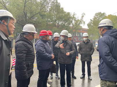 在现场熊寿林局长详细了解目前项目进展、安全生产和施工保障情况、以及后续工期计划安排,并向节日坚守工作岗位的一线施工人员表达了节日问候和新春祝福,反复嘱咐现场人员一定要加强安全生产、确保工程质量,同时叮嘱一线施工人员要注意劳逸结合。