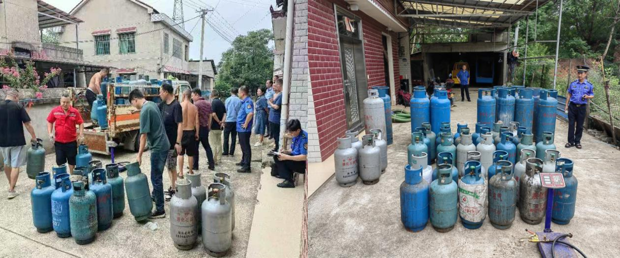 在当地政府、派出所的全力配合下,现场查获50kg液化气钢瓶15个,15kg液化气钢瓶35个,倒灌气枪1把,电子秤1台,目前违法设备已由益阳市城市管理和综合执法局依法扣押,案件正在加紧办理中。