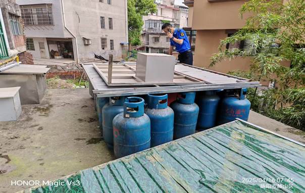 4月16日,市住房和城乡建设局接群众举报,赫山区金银山社区一居民自建房内存在非法储存燃气行为,严重威胁到周边群众的生命财产安全。