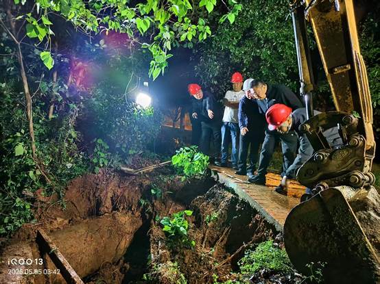 5月4日晚23点35分,市自来水公司调度中心监测到高新片区供水流量异常,立即启动排查。5日凌晨1点50分,探测人员在距离中心城区15公里的益宁城际干道东侧金盆山高速路口至牛头岭方向发现爆管现场,初步分析为暴雨导致道路边坡土方流失垮塌,引起管道下沉,造成管道连接处断裂。