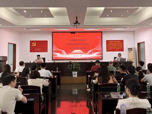 为深入学习贯彻党的二十届三中全会精神和习近平总书记关于机关党建的重要讲话和重要指示精神,持续深化“三个提升行动”,全面提升住建干部队伍的综合素质,6月25日,市住建局举办“文润党建 艺彩纷呈”文化大课堂第一期活动,邀请湖南城市学院大学生心理健康教育中心主任、国家二级心理咨询师、心理治疗师孙芳老师授课。