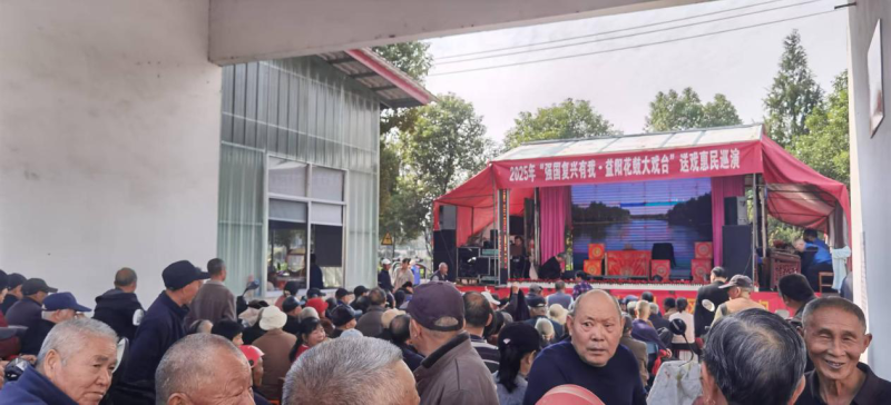 午后阳光温暖和煦,下午 1 点 30 分,心连心小区内同样人气爆棚。沅江市花鼓戏剧团的演员们精神饱满地献上经典剧目《王文虎卖柴》。熟悉的旋律、接地气的剧情、浓郁的乡土气息,深深吸引着小区居民与周边村民。老人们看得聚精会神,孩子们则在一旁好奇围观,不少观众还跟着唱腔轻轻哼唱,现场处处洋溢着欢乐祥和的氛围。演员们不顾演出辛劳,始终全心投入,用精彩表演为村民送上一场高质量的文化盛宴。