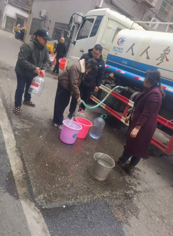 时值春节用水高峰,公司立即组织抢修人员火速赶赴现场,第一时间关闭阀门,科学调度抢修车辆与设备投入抢险。公司值班领导、相关部门负责人第一时间到达现场,靠前指挥,确保各项处置措施高效落地。与此同时,公司通过微信微信公众号、短信平台等多渠道同步发布停水通知,明确区分停水范围与压力受影响区域,快捷清晰的信息发布为居民合理安排用水提供了重要参考。为最大限度降低停水对群众生活的影响,公司紧急调派洒水车,在停水区域内设立临时应急供水点,安排专人引导居民有序取水,对于行动不便的老人主动送水上门,用贴心服务化解群众燃眉之急。