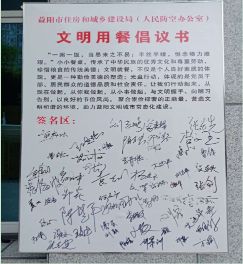 在全市冲刺创建全国文明城市和国家卫生城市复审之际,市住建局(人防办)党组向系统广大党员干部发出号召,要求带头参加创文保卫工作,做促进文明行为的模范。6月4日,全局发出《文明用餐倡议书》,提倡珍惜粮食,开展光盘行动,从现在做起,从你我做起。在党组书记、局长(主任)熊寿林同志的带领下,午餐时间就有50多名党员干部响应签名。