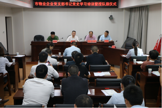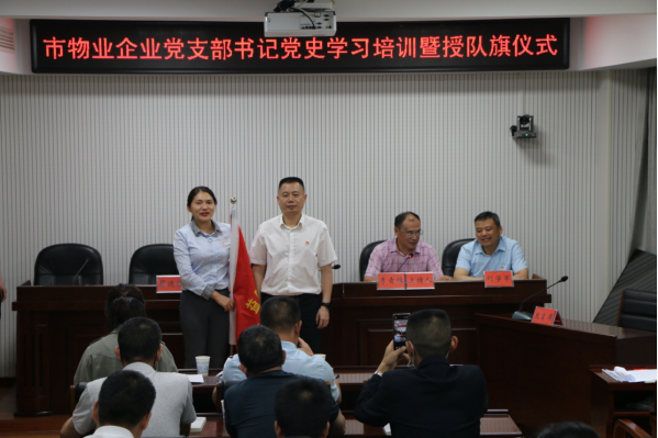 6月3日下午,市物业行业党委举行物业企业党支部书记党史学习教育培训暨授队旗仪式。市住建局(人防办)党组成员、副局长、市物业行业党委书记李勇出席会议,30名物业企业党支部书记参加了会议。