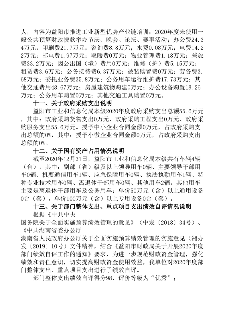 附件1:2020年度益阳市工业和信息化局整体支出绩效自评报告.docx