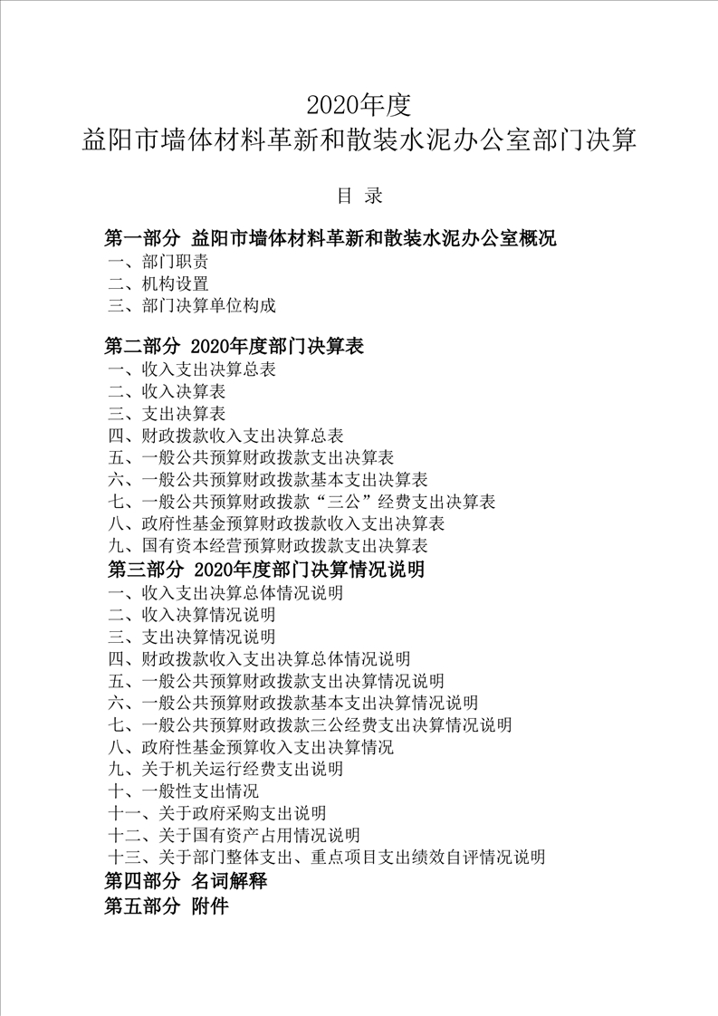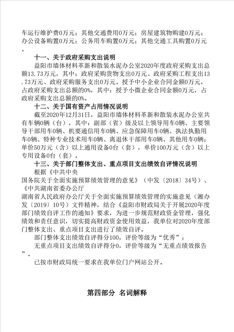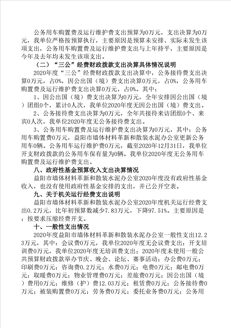 2020年度益阳市墙体材料革新和散装水泥办公室部门决算
