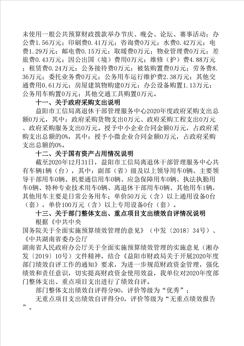 2020年度益阳市工信局离退休干部管理服务中心部门决算